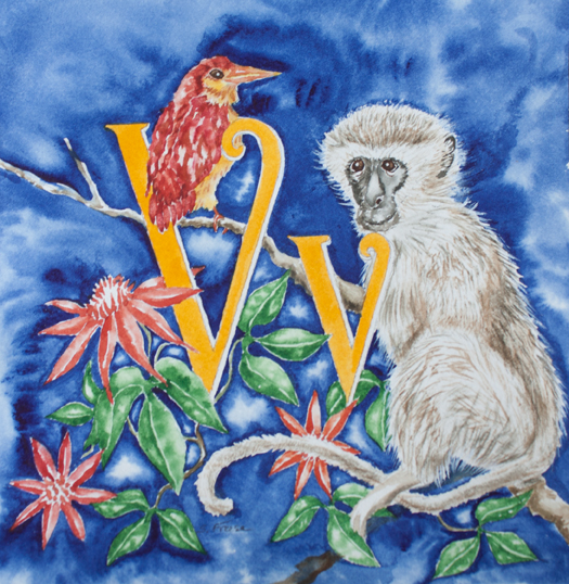 vervet, variable kingfisher, vine passionflower