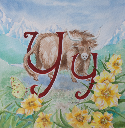 yak, yellow Himalaya lilies, yellow sulphur butterfly